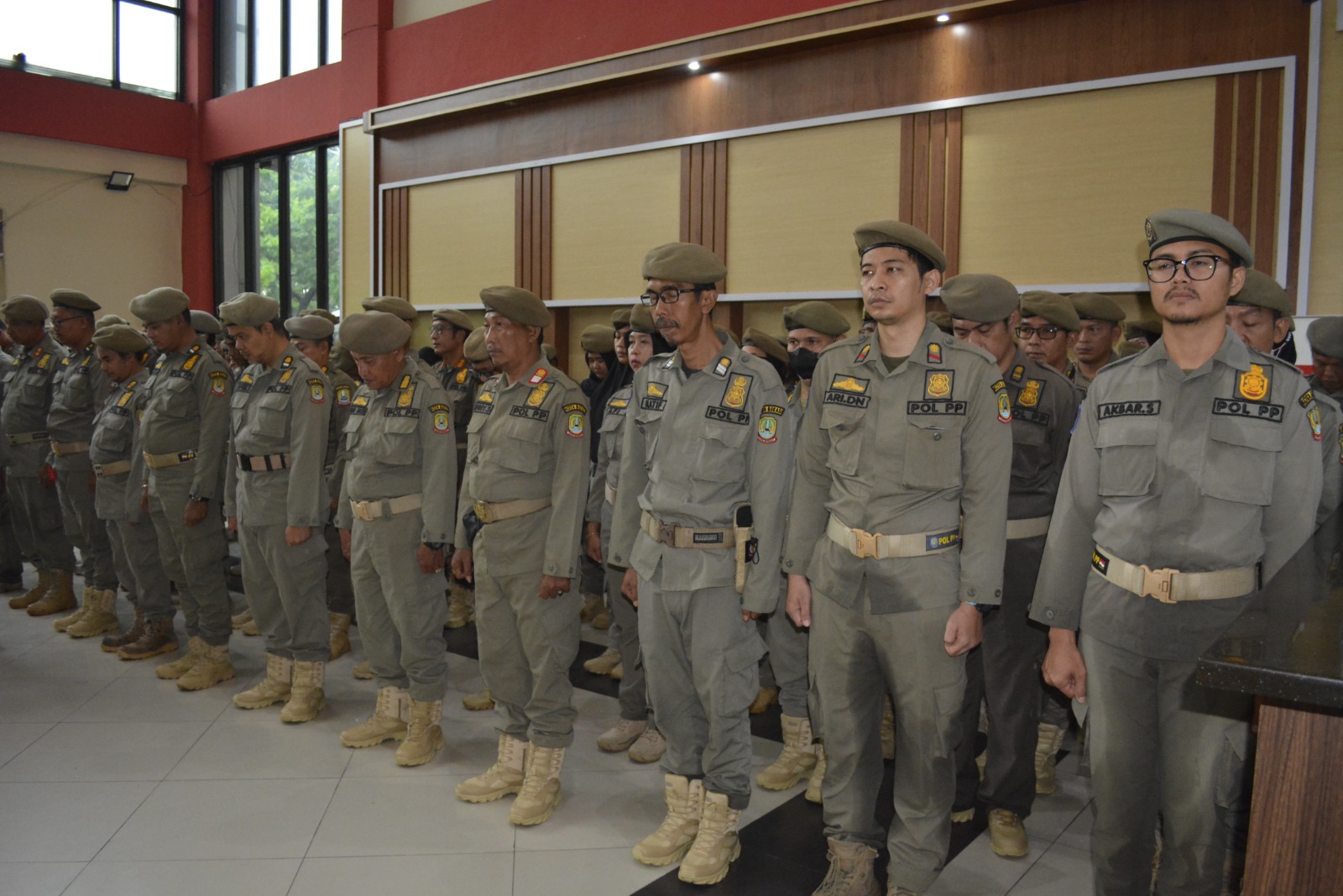 KEPALA SATUAN POLISI PAMONG PRAJA KOTA BEKASI MELAKSANAKAN PEMBINAAN PEGAWAI DALAM APEL GABUNGAN WILAYAH DAN MAKO.